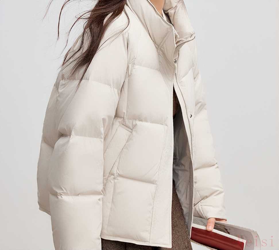 "舒適保暖:" 主打“暖科技”,絨子含量高(如90%、95%),蓬松度好,面料防風(fēng)防水,設(shè)計(jì)上不斷迭代,如3D立體縫合、輕薄款