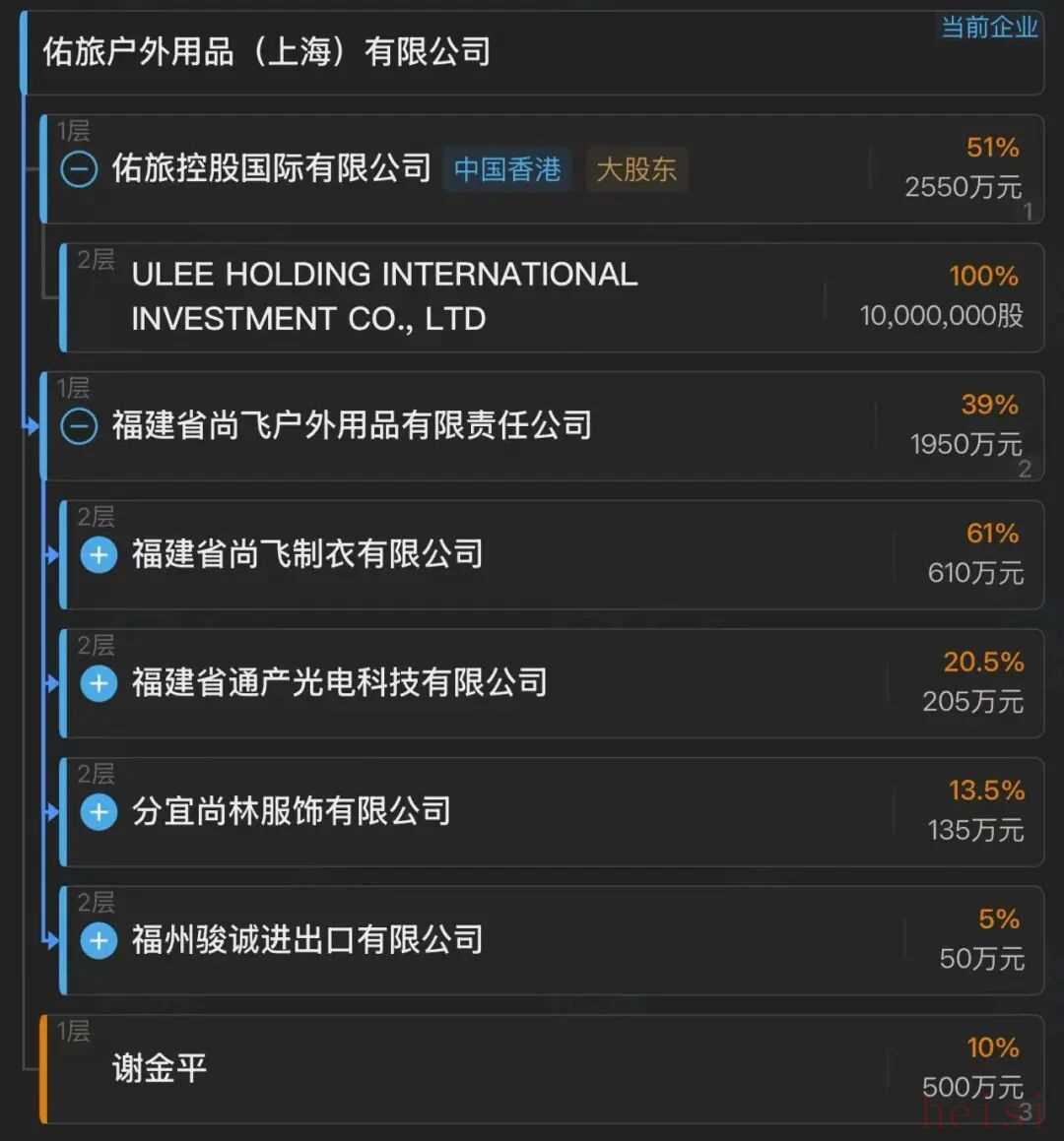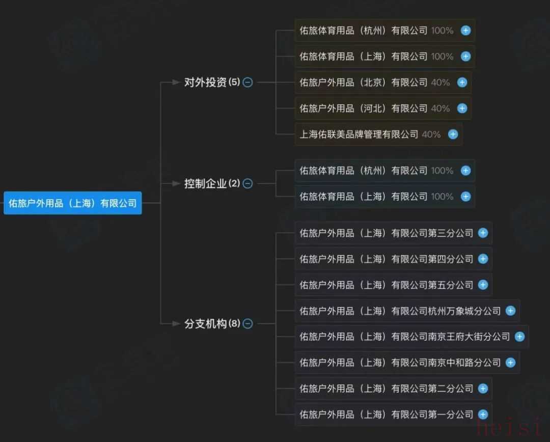 安德瑪戶(hù)外在線下的擴(kuò)張進(jìn)度很快。以北京為例,今年2月只有朝陽(yáng)大悅城和百盛兩家店,半年后已經(jīng)有10家店。2月安德瑪戶(hù)外布局在17個(gè)市級(jí)城市,如今已進(jìn)入21個(gè)省份,且不乏上海恒隆廣場(chǎng)、北京超級(jí)合生匯、杭州萬(wàn)象城這樣的中高端核心商圈。幕后推手是一家叫做佑旅戶(hù)外用品(上海)的公司。企查查顯示,該公司成立于2023年7月。目前是安德瑪戶(hù)外業(yè)務(wù)在中國(guó)的唯一代理商。佑旅與安德瑪淵源頗深,同屬一個(gè)股東(佑旅控股國(guó)際有限公司,注冊(cè)地在香港)的另一家公司佑旅運(yùn)動(dòng)科技(杭州)有限公司,成立于2020年6月,是安德瑪兒童線在中國(guó)的唯一代理商。根據(jù)佑旅(杭州)相關(guān)負(fù)責(zé)人在公開(kāi)場(chǎng)合的發(fā)聲,佑旅(杭州)是國(guó)內(nèi)唯一一家集生產(chǎn)、設(shè)計(jì)、研發(fā)、銷(xiāo)售于一體的授權(quán)商,安德瑪兒童的線下門(mén)店400多家。在安德瑪品牌的中文官方網(wǎng)站上沒(méi)有兒童產(chǎn)品線設(shè)置,品牌兒童線業(yè)務(wù)完全由佑旅(杭州)包攬。換個(gè)方式表述,佑旅(杭州)是買(mǎi)下了安德瑪兒童的商標(biāo)在中國(guó)的唯一使用權(quán),他們可以貼牌售賣(mài),類(lèi)似安踏對(duì)可隆、FILA等品牌的操作模式。根據(jù)佑旅(杭州)的股權(quán)穿透圖粗略判斷,安德瑪兒童線的經(jīng)營(yíng)狀況不算理想,1/3的分支機(jī)構(gòu)(子公司、加盟商)處于注銷(xiāo)狀態(tài)。