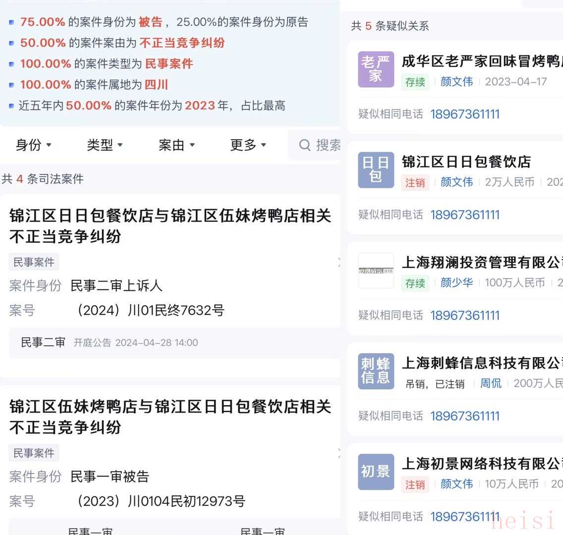 顏文偉作為經(jīng)營者的錦江區(qū)日日包餐飲店被伍妹烤鴨店告上法庭