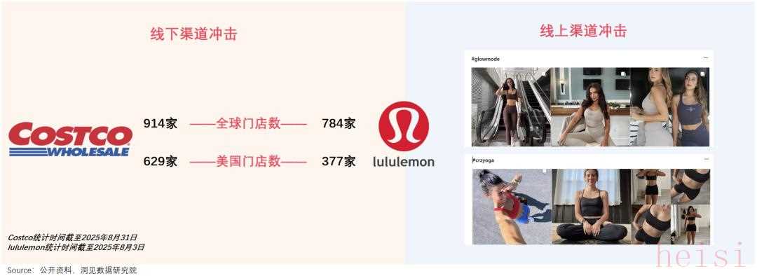 Costco這類零售巨頭,不僅自帶強大流量,全球門店數(shù)也更多,北美門店數(shù)更是接近lululemon的2倍。其強大的供應(yīng)鏈和渠道能力,足夠lululemon喝一壺的。