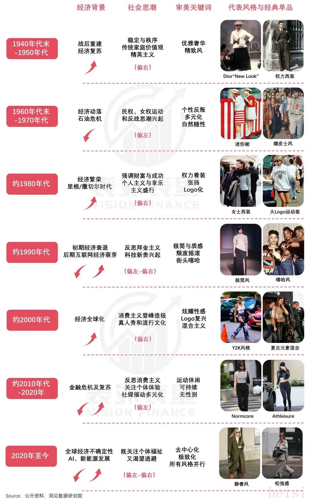 從更長的維度看,時尚也是一種周期輪回:當經(jīng)濟上行、保守主義占上風(fēng)時,權(quán)力、地位開始主導(dǎo)審美;而經(jīng)濟動蕩、社會思潮強調(diào)公平時,時尚則化身個人自由表達的載體,包容與舒適成為新美學(xué)。