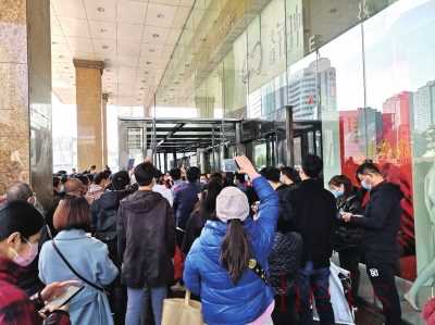 3月30日上午,在遲遲未開門的大商金博大店外,商戶和顧客等待進(jìn)入商場 河南商報(bào)記者王春勝/攝