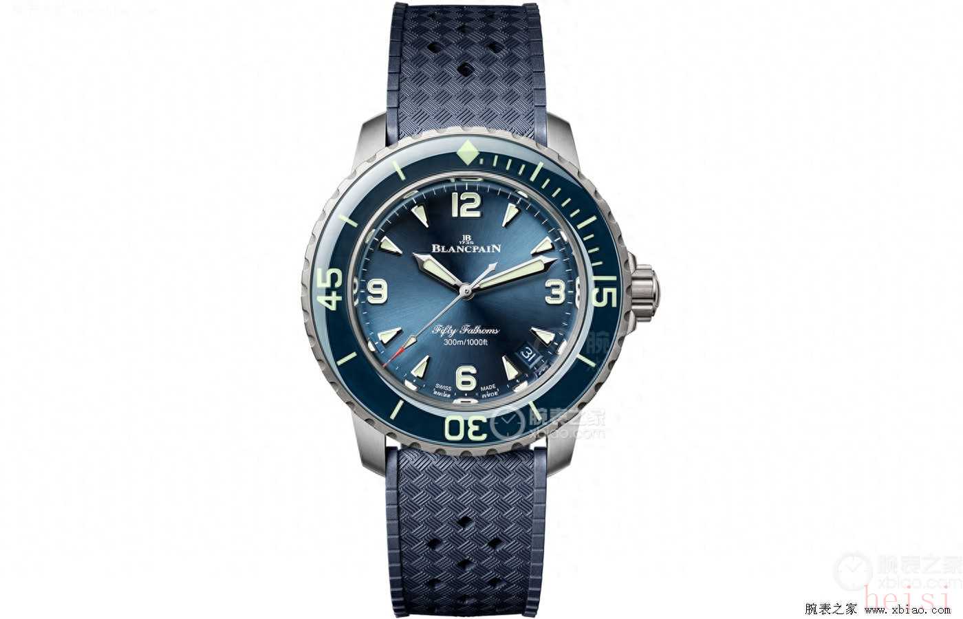 腕表點評:寶珀五十噚在今年推出了38.2mm的女表,這枚腕表對于想要嘗試五十噚的細手腕簡直太友好了。雖為女表但完全延續(xù)了五十噚系列的經(jīng)典設計,藍色太陽射紋表盤以及同色系的藍寶石表圈。日歷窗設置在4、5時之間的位置,時標和時針均覆有夜光的涂層。表殼采用了鈦金屬,也是五十噚系列常用材質(zhì)。12毫米的厚度作為專業(yè)潛水表來說,并不算太厚,佩戴起來舒適度還是不錯的。機芯搭載的是寶珀1150自動機械機芯,機芯厚度3.25毫米,動力儲備達到100小時。300米防水深度搭配上橡膠表帶,水下運動毫無壓力。