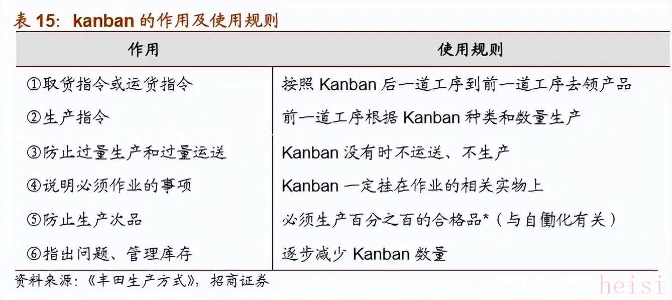 “看板”的作用及使用規(guī)則 資料來源:《豐田生產(chǎn)方式》,招商證券這種精準(zhǔn)的“拉動(dòng)對齊”,讓零部件和整車庫存被降到極低水平,大大減少了倉儲(chǔ)空間、管理費(fèi)用以及零部件過時(shí)或銹蝕帶來的浪費(fèi),豐田的利潤率也由此大大增加。