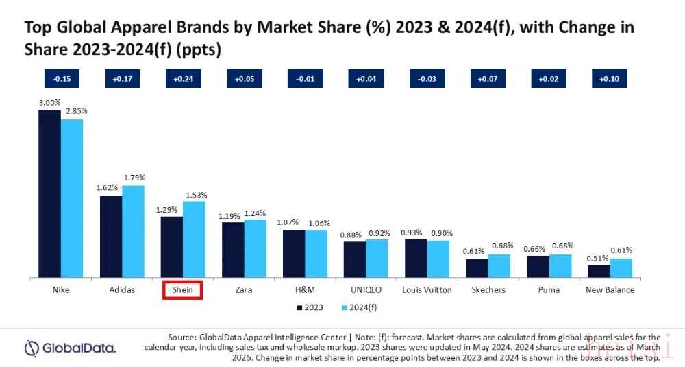 市場研究機(jī)構(gòu)GlobalData的報(bào)告也顯示,SHEIN在2024年已成功躋身全球第三大時(shí)尚零售商,與ZARA、H&M等傳統(tǒng)快時(shí)尚巨頭并駕齊驅(qū)。