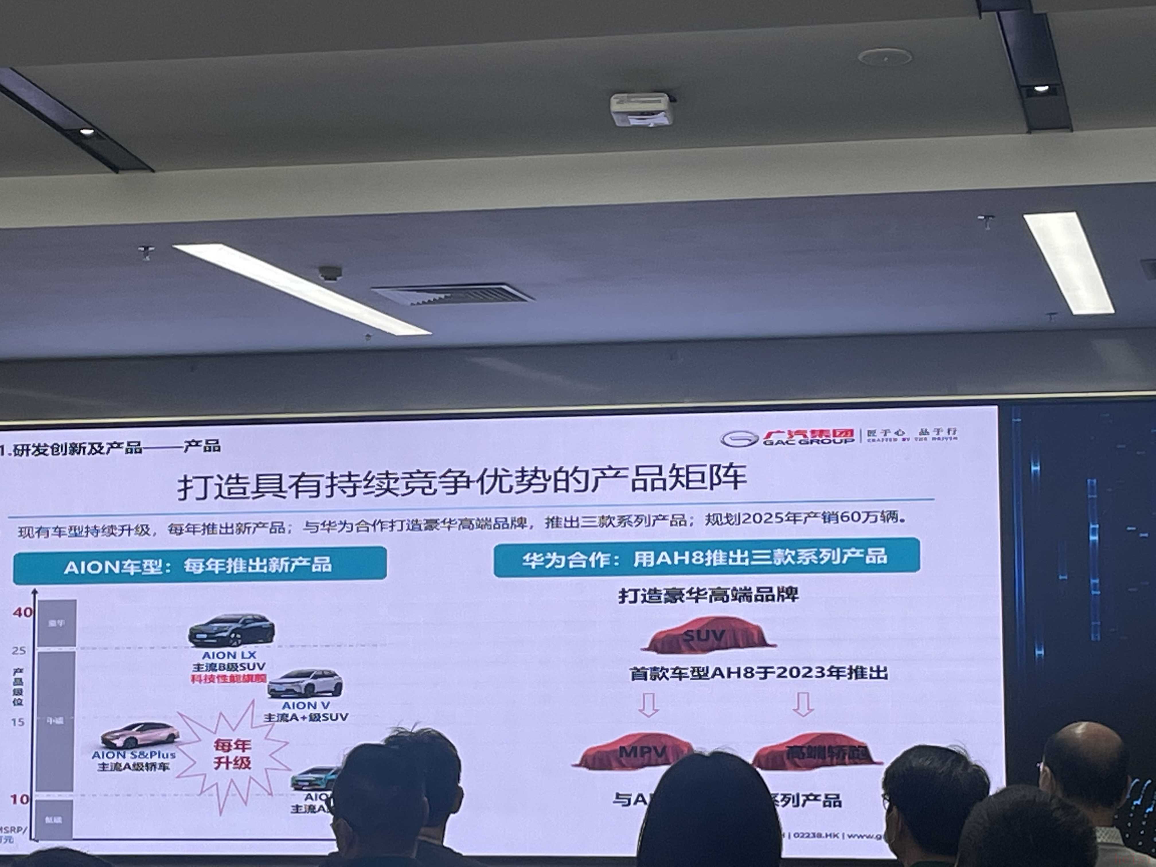 “廣汽埃安與華為合作打造豪華高端品牌,推出三款系列產(chǎn)品,首款車型AH8于2023年推出,定位SUV。此外還有兩款基于AH8同平臺的車型推出,一款MPV,一款高端轎跑?!?月27日,廣汽埃安總經(jīng)理古惠南在廣汽投資日活動上表示。