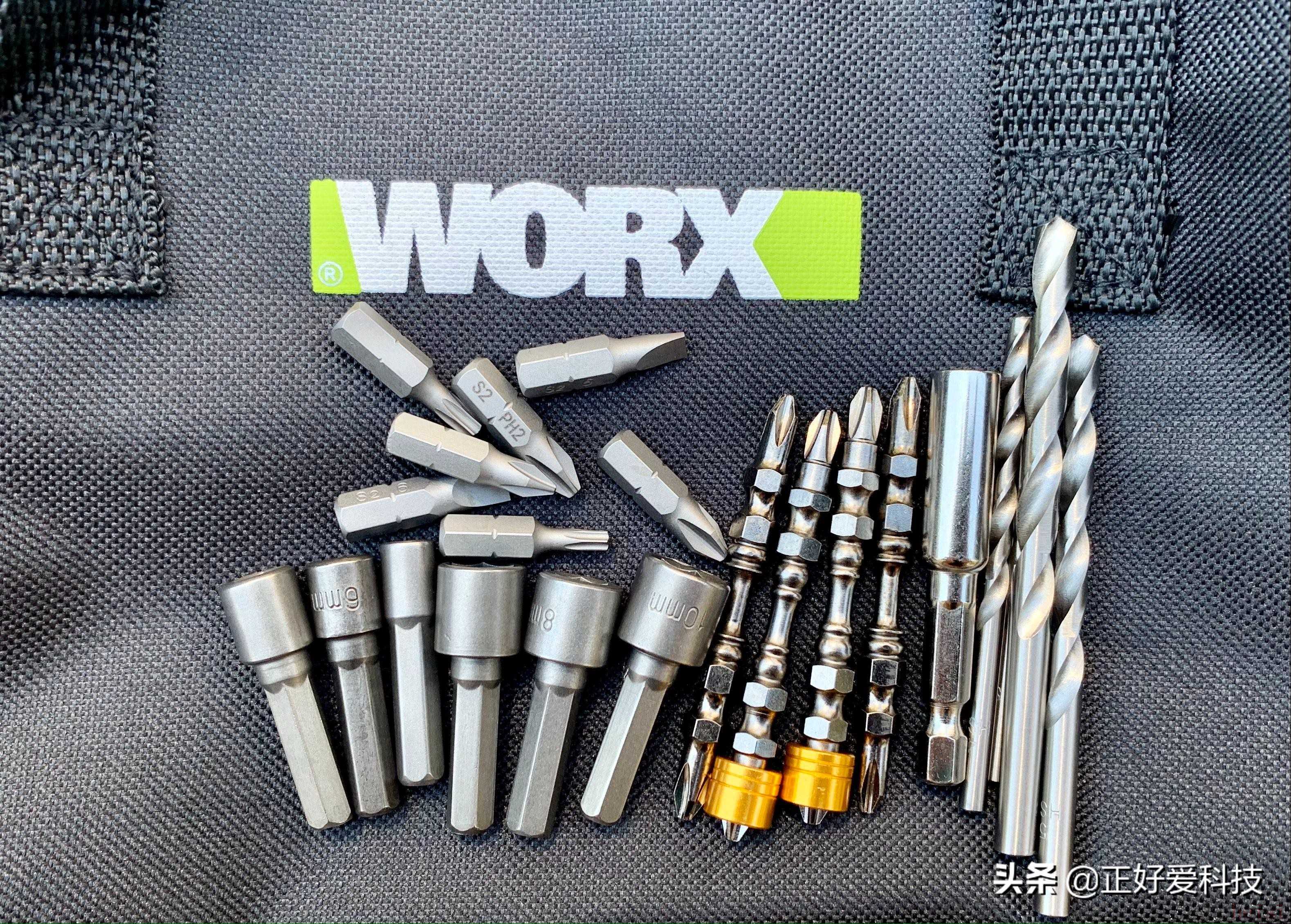 ▲這次我們來(lái)個(gè)快速開(kāi)箱。我入手的這款威克士鋰電無(wú)刷手電鉆(以下簡(jiǎn)稱威克士電鉆)的型號(hào)為WE212。它的外包裝采用了傳統(tǒng)的瓦楞紙,簡(jiǎn)潔又環(huán)保。內(nèi)包裝里,威克士對(duì)內(nèi)部的配件都做有分區(qū)包裹,細(xì)節(jié)體現(xiàn)了品質(zhì)和用心。整套威克士電鉆一共包括:電鉆本體、鋰電池、充電器、使用說(shuō)明書和四種不同規(guī)格的批頭(套筒),另外威克士還附送了一只收納袋,內(nèi)部空間還挺大的,提高了產(chǎn)品日常使用起來(lái)的便利性。順便簡(jiǎn)單介紹一下WORX威克士,它是寶時(shí)得機(jī)械(中國(guó))有限公司針對(duì)專業(yè)領(lǐng)域用戶而創(chuàng)立的一個(gè)國(guó)際性的高端電動(dòng)工具品牌。二、細(xì)節(jié)展示