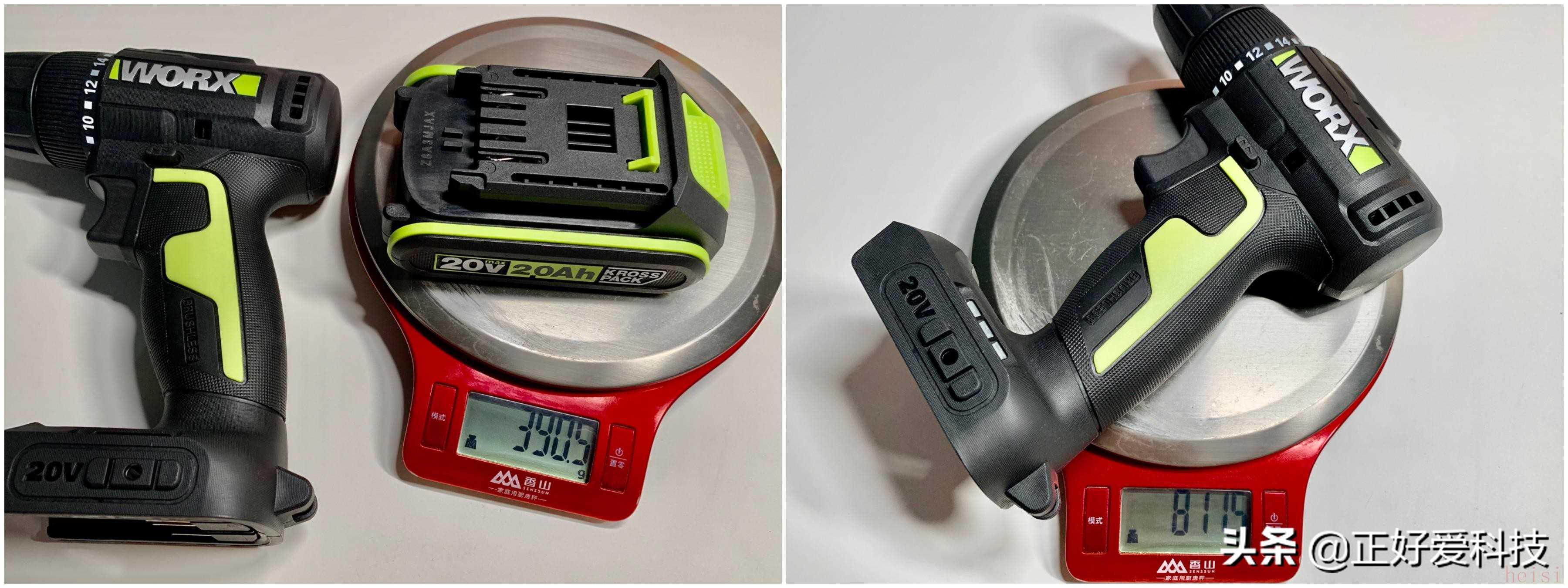 ▲威克士電鉆的整機(jī)重量約為1.2kg,通過(guò)實(shí)測(cè)電池重量約為390g,電鉆本體為810g,在目前市場(chǎng)同類產(chǎn)品中,這個(gè)大小和重量算是很輕便的。