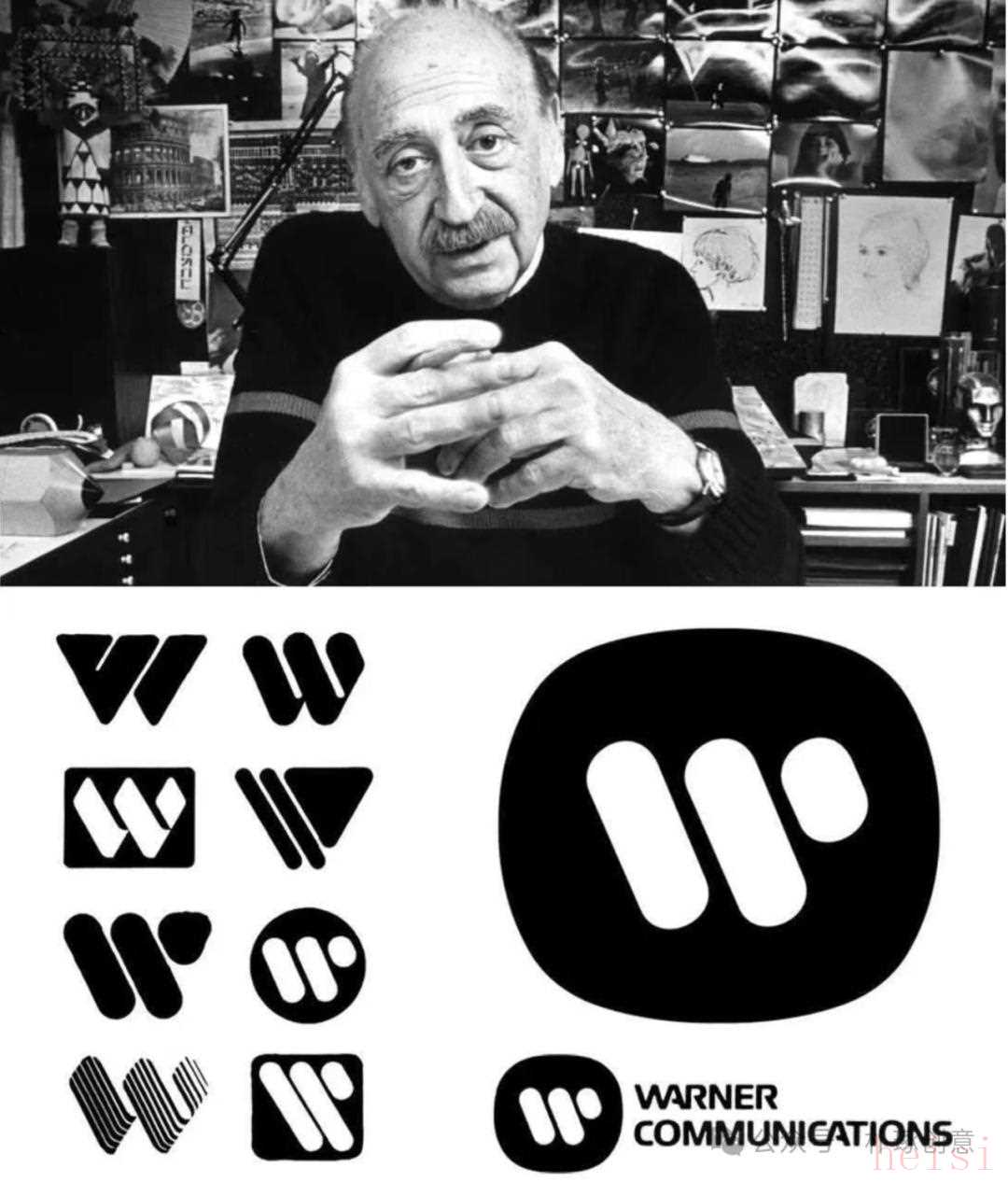 17索爾?巴斯 華納通訊1972 年,華納通訊想擺脫 “老派傳媒公司” 的刻板印象,找來了以 “動態(tài)圖形” 聞名的設計師索爾?巴斯,還有 Herb Yager & Associates 公司一起合作。巴斯沒像其他傳媒品牌那樣,把 “Warner” 字母規(guī)規(guī)矩矩排成一行,而是玩了個 “拆解重組” 的把戲。他把 “Warner” 的字母拆開來,再用流暢的線條串在一起,看著就像電影膠片在轉動,一不留神就帶出了華納做影視娛樂的老本行。有人問他:“字母拆得這么散,不怕別人認不出嗎?” 巴斯卻笑著說:“娛樂本來就是活的,標志哪能死氣沉沉?我要讓大家一看這線條,就想起電影里的光影,想起故事里的活力?!?/p>這設計一出來,果然打破了傳媒公司的嚴肅感 —— 印在海報上,像膠片在流動;放在片頭動畫里,和畫面一搭,簡直像 “標志自己在演故事”。巴斯一直說 “標志得會講故事”,華納這枚標志就是最好的例子。后來不少娛樂公司設計標志,都學著往 “有動態(tài)、有敘事感” 里做,巴斯用線條證明:好的標志,不只是個符號,還能是 “會說話的故事開頭”。