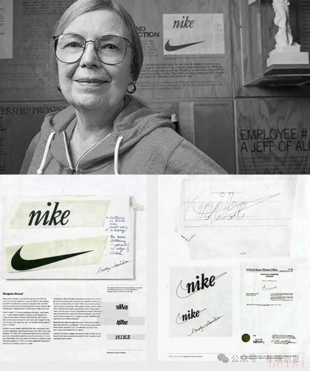 08耐克(NIKE)—— 卡洛琳?戴維森(Carolyn Davidson)1971 年,卡洛琳?戴維森還在波特蘭州立大學學設計,接了個兼職:給一家叫 “藍帶體育”(后來的耐克)的小公司畫標志,就給 35 美元。那時候公司老板菲爾?奈特就想讓標志 “看著快”。戴維森想起希臘勝利女神的翅膀,就用一根曲線畫了個 “飛過去” 的痕跡,也就是現(xiàn)在的 “swoosh”。奈特一看就皺眉頭:“這看著像‘嗖’的一聲,太輕了,不穩(wěn)。” 戴維森卻沒松口:“運動贏了,不就是那一下子的事兒嗎?快得讓人反應不過來?!?奈特沒別的辦法,只好用了。誰能想到,就這么一根曲線,后來跟著邁克爾?喬丹 1985 年 “飛起來扣籃” 的樣子,從運動鞋上的小標志,變成了全世界都認識的 “拼勁兒” 符號?,F(xiàn)在這 “勾” 不光印在鞋上,還印在校服上、運動場上,甚至公益海報上。大家才明白:“原來簡單的線條,能比復雜的圖案更有勁兒。” 后來運動品牌都學著往簡約、有動感里做,戴維森這 35 美元的設計,算是徹底改變了運動品牌的標志風格。2000 年的時候,奈特特意送了她一枚刻著 “swoosh” 的鉆石戒指,算是補上了當年的 “虧欠”。