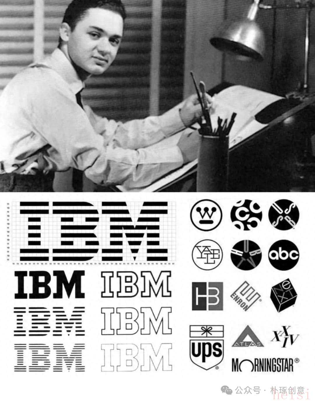 01. IBM—— 保羅?蘭德(Paul Rand)1956 年,保羅?蘭德干了件 “得罪人” 的事 —— 他把 IBM 那幾個字母,用一樣寬的線條重新畫了,后來 1972 年又加上了細到 0.1 毫米的橫條紋。那時候 IBM 還是靠造大型機器吃飯的 “藍色巨人”,公司里的老領導都覺得老標志上的花紋不能丟,說那是 “老底子”。蘭德直接給 CEO 小托馬斯?沃森寫了封信,話說得挺直接:“標志不是掛墻上看的藝術品,是要用的 —— 印在名片上得清楚,掛在大樓上得顯眼,更重要的是,別人一看見‘IBM’,就知道這牌子靠譜。”他這條紋可不是隨便加的:既能讓人想起數(shù)據在傳的樣子,又解決了一個大問題 —— 以前字母印小了就模糊,加了條紋就清楚多了。1956 年沒加花紋的版本,讓 IBM 擺脫了工業(yè)品牌的笨重感;1972 年又把原來的 13 條條紋改成 8 條,老遠就能看清。就這么個設計,不光讓 IBM 成了 “靠譜工業(yè)” 的代名詞,還讓全世界的公司都明白:“原來標志能把品牌的心思說清楚??!” 后來惠普、施樂這些科技公司,都學著用這種 “規(guī)規(guī)矩矩又好看” 的風格,現(xiàn)代企業(yè)的 VI 系統(tǒng)(視覺識別)能普及,蘭德這一下功不可沒。