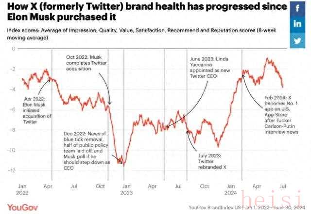 Twitter成為X之后,動(dòng)蕩在所難免。但現(xiàn)在,情況似乎走到了一個(gè)新的轉(zhuǎn)折點(diǎn)——據(jù)YouGov BrandIndex的數(shù)據(jù),X的形象正在慢慢恢復(fù)到馬斯克之前的水平;“改版”后,X的特點(diǎn)和主線(xiàn)逐漸清晰,在不斷變化的社媒風(fēng)云中,終于給出了“確定性”。