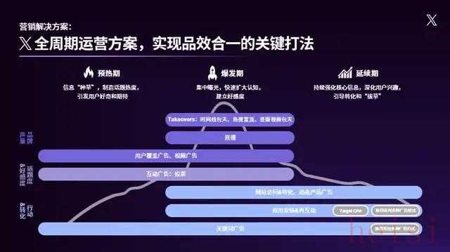 - 在爆發(fā)期,通過(guò)“Takesover”、直播等工具進(jìn)行集中曝光、快速擴(kuò)大認(rèn)知,建立品牌好感度。Takesover是X平臺(tái)頂級(jí)的大規(guī)模覆蓋廣告,確保品牌始終處于最佳曝光C位,大幅提高用戶(hù)觸達(dá)率。X Live則讓廣告主可以向全球用戶(hù)實(shí)時(shí)直播品牌的重要時(shí)刻的大事件,并觀(guān)眾進(jìn)行實(shí)時(shí)對(duì)話(huà)與互動(dòng)。而延展功能Live Shopping則允許廣告主在直播過(guò)程中展示商品,實(shí)現(xiàn)“邊看邊買(mǎi)”。
