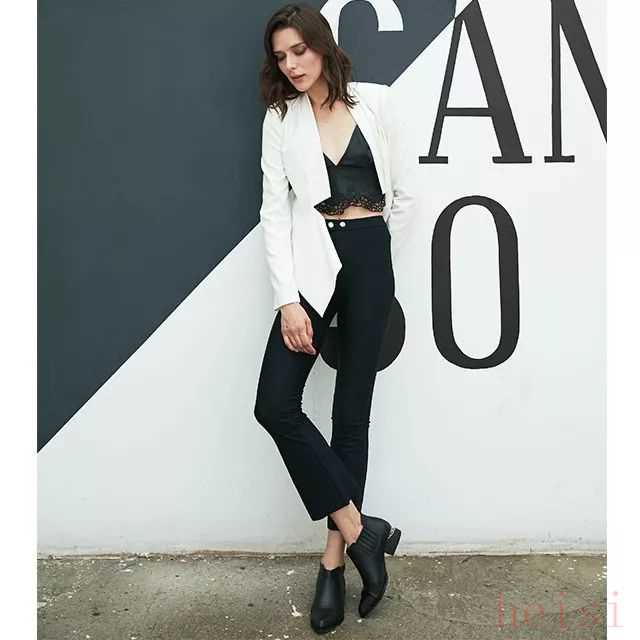 Tips:如果你是梨形身材,那么微喇叭褲,不太適合你。建議選擇闊腿褲,會(huì)更修身。