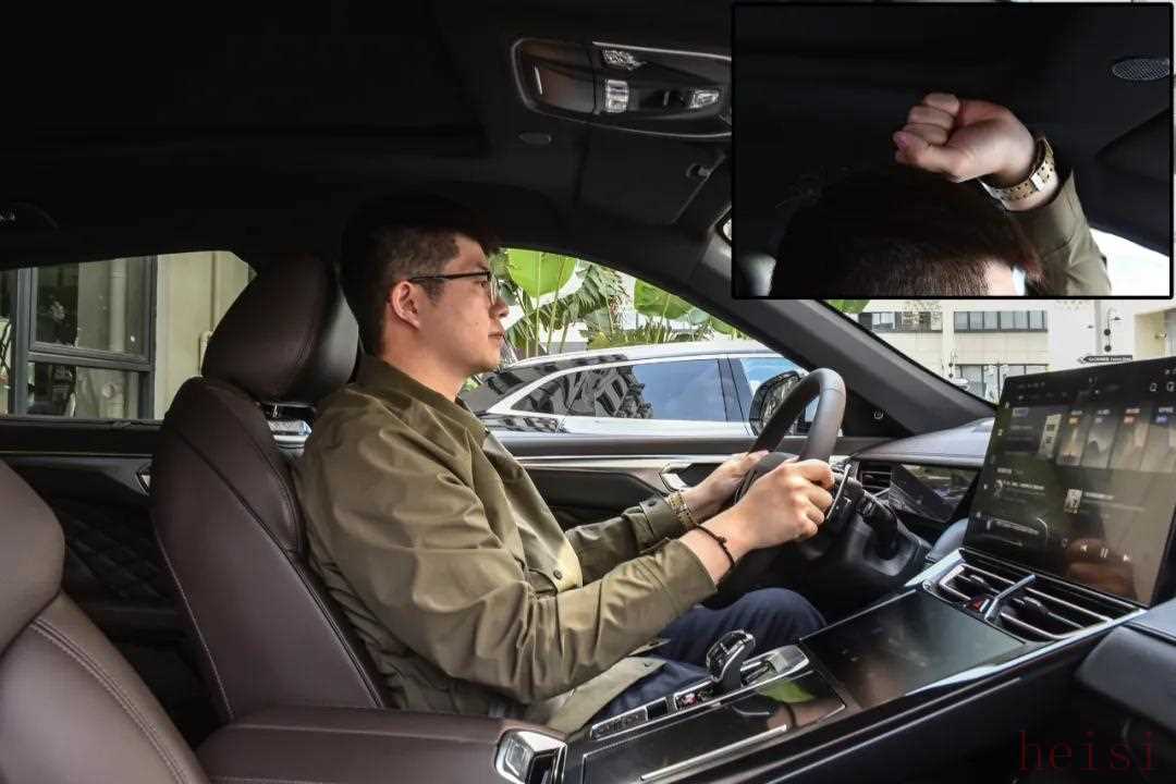 身高185cm的體驗者進入前排,并將座椅位置調(diào)至最低,此時體驗者的頭部空間為一拳左右,整體中規(guī)中矩,但沒有什么壓抑的感覺。