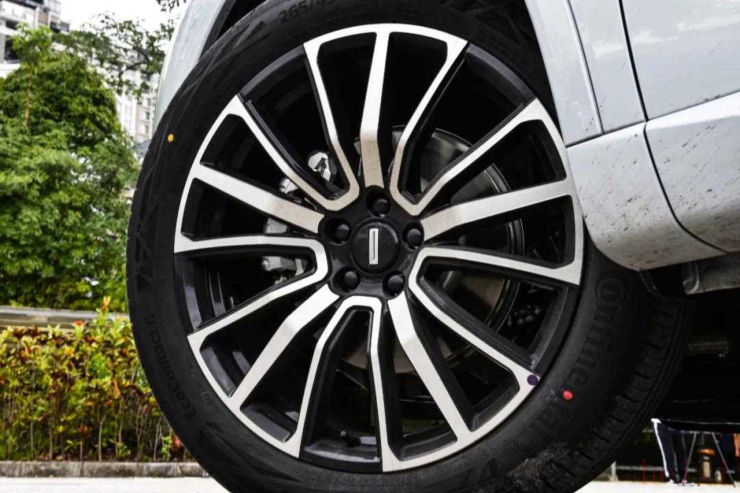 多條輻的輪圈樣式比較普通,雙色的設計也是目前主流的設計。21英寸大小的輪圈在中型SUV中其實并不多見,輪胎選用的是馬牌EcoContact 6系列,規(guī)格為265/45 R21,每條的價格在2000元以上,誠意足夠。