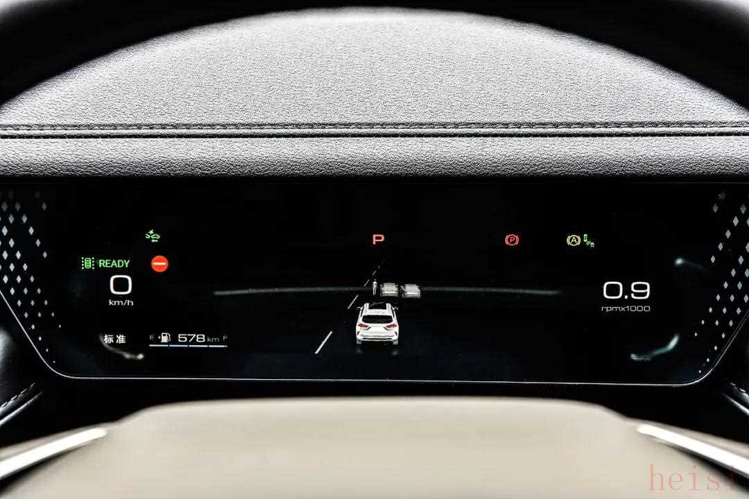 得益于AR-HUD抬頭顯示功能的加入,更多的信息都會在此顯示,所以全液晶儀表的尺寸并不是不大,但內(nèi)部的UI設計很有那種高級氛圍,畫質(zhì)也很清晰,有種小而精的視覺感。