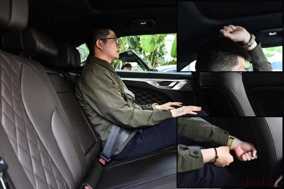 同一體驗者進入后排,保持前排位置不變,此時頭部空間為一拳左右,還算充裕,而腿部空間達到了兩拳,日常通勤包括長途出游完全沒問題。