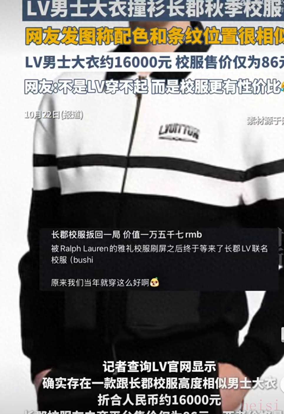 10月23日,網(wǎng)友在社交媒體貼出的一組對比圖引發(fā)熱議:路易威登2025秋冬限定款男士大衣與長沙某中學校服意外"撞衫"。價值1.6萬元的LV單品與售價86元的校服,在黑白拼色比例、收束袖口設(shè)計上展現(xiàn)高度相似性。這款大衣自4月上市以來已在全國門店售罄,官網(wǎng)上"缺貨"標簽更是維持了半年之久。當奢侈品牌遇上中國校園制服,這場跨越價格鴻溝的時尚巧合,揭開了當代消費文化中的多重悖論。