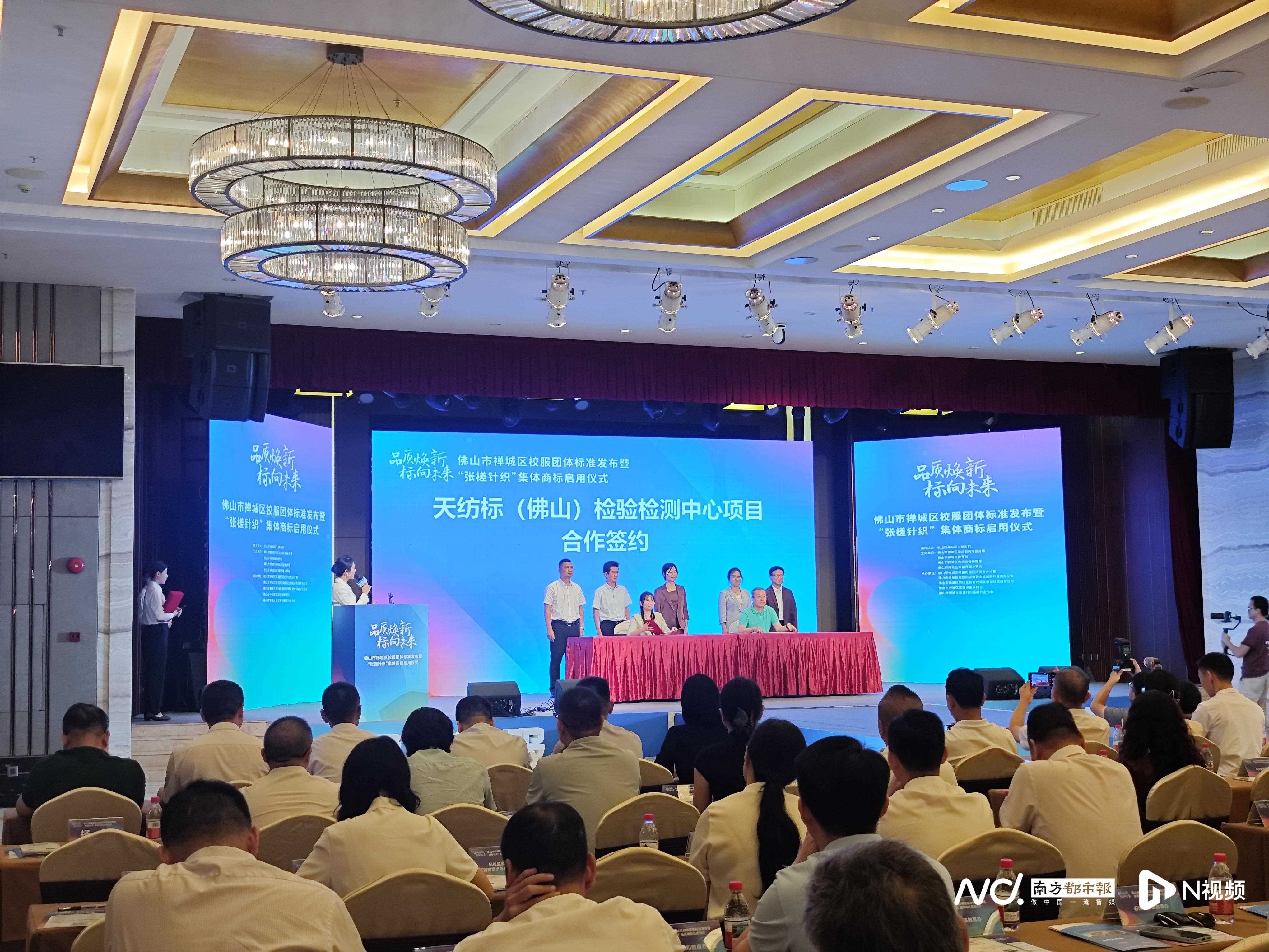 6月28日,佛山市禪城區(qū)校服團(tuán)體標(biāo)準(zhǔn)在“中國(guó)針織名鎮(zhèn)”張槎正式發(fā)布,“張槎針織”集體商標(biāo)同步啟用?;顒?dòng)現(xiàn)場(chǎng),天紡標(biāo)(佛山)檢驗(yàn)檢測(cè)中心項(xiàng)目簽約落地,與張槎共建紡織服裝質(zhì)量基礎(chǔ)設(shè)施“一站式”服務(wù)站,構(gòu)建起“標(biāo)準(zhǔn)制定-檢測(cè)認(rèn)證-品牌輸出”全鏈條生態(tài)體系。