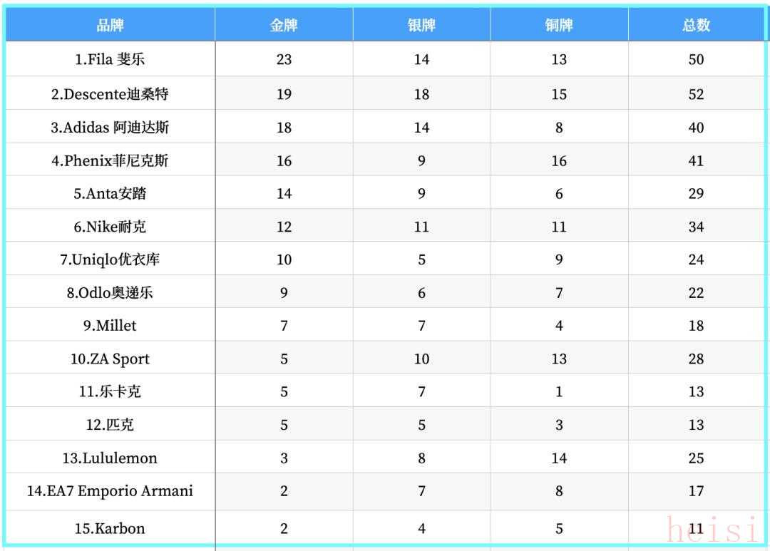 據(jù)鳳凰網(wǎng)時尚統(tǒng)計(jì),迪桑特成為獎牌最大“贏家”,F(xiàn)ila斐樂在此次冬奧會中共“獲得”23枚金牌。值得注意的是,此次冬奧會中,安踏作為中國代表團(tuán)和多支國家隊(duì)的贊助商,安踏的優(yōu)異表現(xiàn)也與中國冬奧會參賽選手的出色發(fā)揮有著強(qiáng)烈的聯(lián)系;其次,中國運(yùn)動品牌匹克上榜;李寧所贊助的運(yùn)動員共收獲2枚金牌。