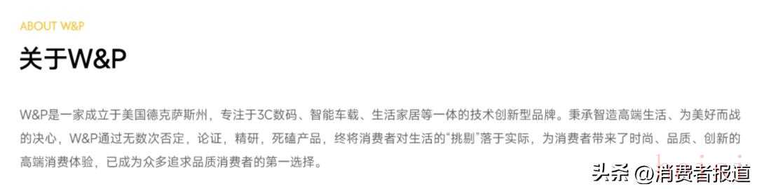 據(jù)W&P官網(wǎng)介紹,W&P是一家成立于美國德克薩斯州,專注于3C數(shù)碼、智能車載、生活家居等一體的技術創(chuàng)新型品牌。