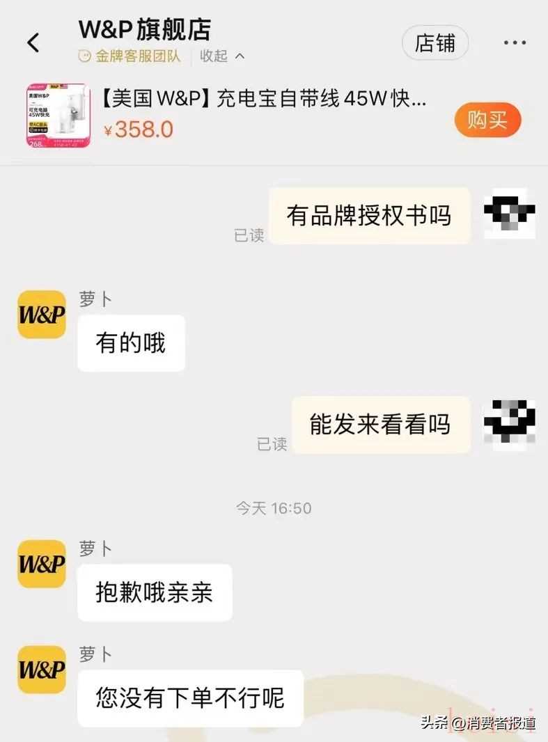 《消費者報道》記者通過社交平臺了解到,有不少消費者直言該品牌為“假洋貨”,吐槽其產(chǎn)品價格虛高、充電寶充電慢等問題。更有消費者表示,W&P披著“洋皮”賣高價。對此,《消費者報道》記者向微爾普(深圳)電子有限公司發(fā)送采訪函問詢,截至發(fā)稿日,對方未有任何回復。