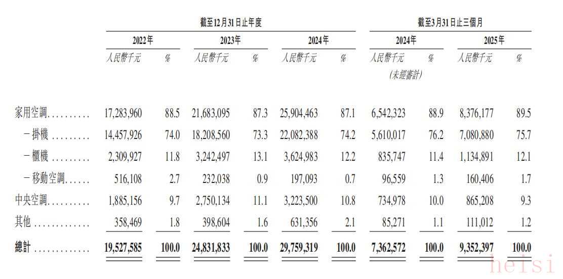 招股書披露,于業(yè)績(jī)記錄期(2022年、2023年、2024年及2025年一季度,下同)內(nèi),奧克斯的收入主要來自產(chǎn)品銷售,包括家用空調(diào)及中央空調(diào),也有收入來自原材料銷售、品牌授權(quán)費(fèi)及物業(yè)租賃等其他業(yè)務(wù)。