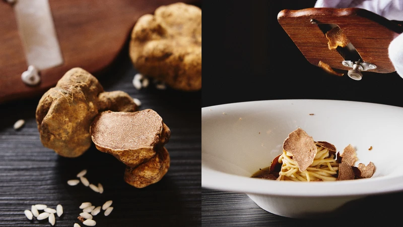 來自義大利皮埃蒙特阿爾巴地區(qū)的白松露是世界公認最珍貴的食用菌之一,由于無法人工培育的特性,讓它成為秋季餐桌上最夢幻的食材。這款松露擁有淡粉白的細膩紋理與金橄色外層,香氣中帶有泥土、奶酪與淡淡大蒜辛香,氣味柔和卻極具層次。主廚以此為靈魂,將每道料理的風味層次細緻構筑。
