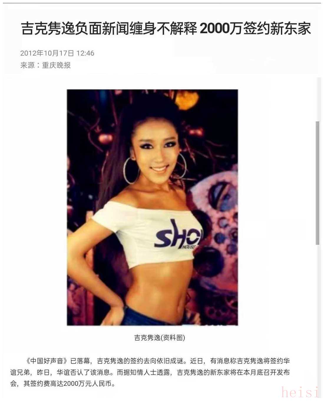 有錢,是從吉克雋逸參加《中國(guó)好聲音》開始,就跟她綁定的關(guān)鍵詞。