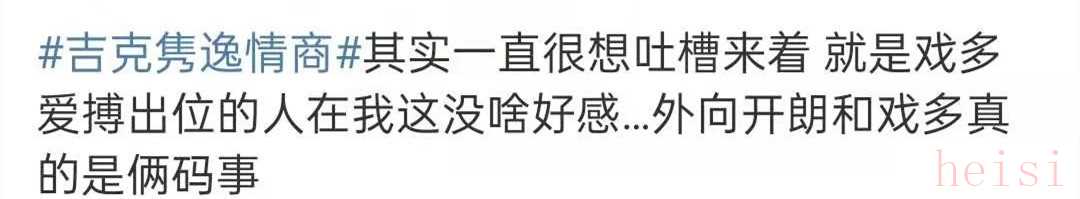 此外,吉克雋逸還被指錄制《吐槽大會(huì)》不背稿,全程看提詞器還老卡殼;《我家那小子》中,常常打斷別人說話;前腳在“浪姐2”中說楊丞琳有男朋友,后腳就將“李榮浩結(jié)婚跟偶像塌房一樣”送上了熱搜。
