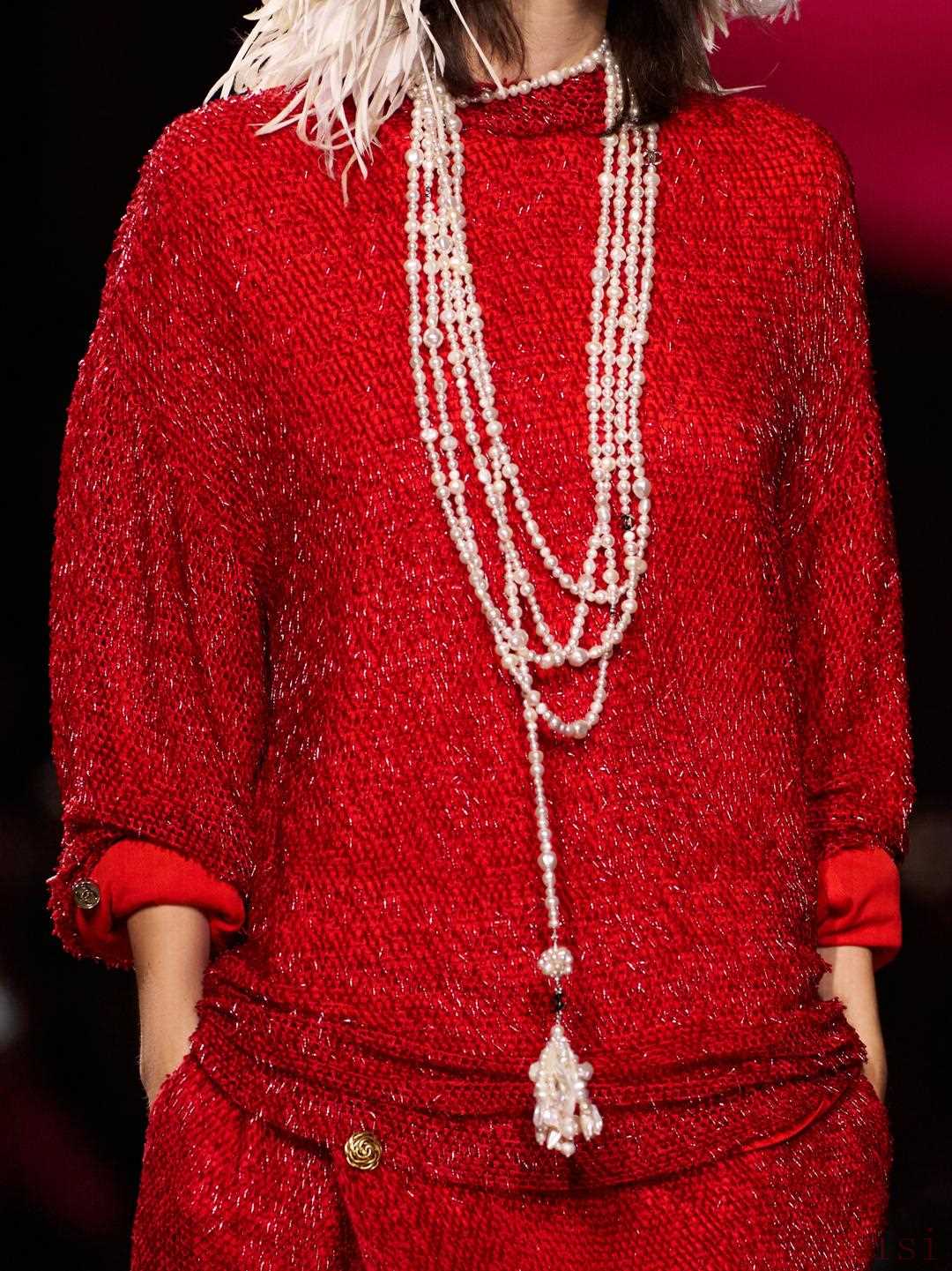 這種融合,帶有孤單英雄般的壯闊氣質(zhì),Blazy以極大的勇氣把自己交付給了這個(gè)品牌,而非以置身事外的態(tài)度用新瓶裝舊酒。就好像貫穿在整個(gè)系列中的羅紋針織底褲,巧妙地在上衣和下裝之間創(chuàng)造出了新的造型思路,為諸多降低的腰線疊加了層次。更具深意的是,此舉既是在呼應(yīng)Gabrielle Chanel大膽將這種用于男士?jī)?nèi)衣的jersey針織面料用來(lái)制作橫紋水手衫,也是Blazy私密情感的寄托—他的父親曾經(jīng)為一間男士?jī)?nèi)衣工廠工作。