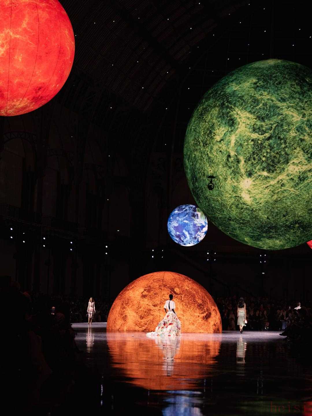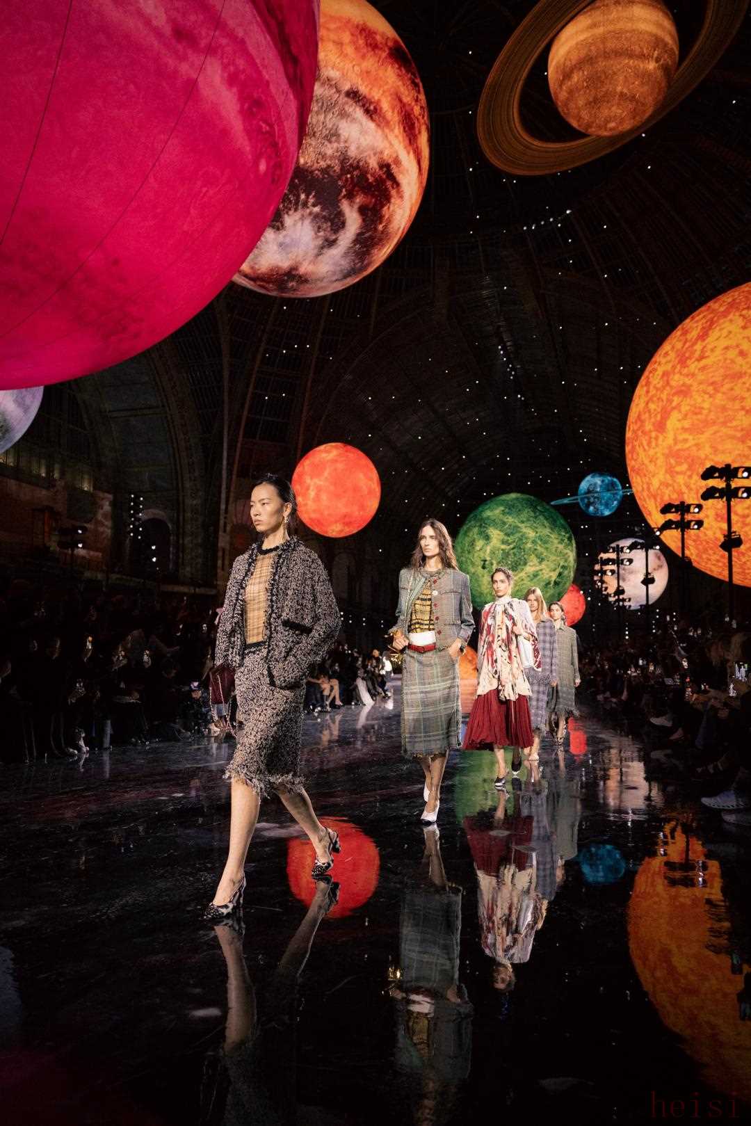 "光影主導(dǎo):" 舞臺(tái)本身不是重點(diǎn),重點(diǎn)是光線。利用高科技LED屏幕、投影映射(Projection Mapping)、激光束、甚至移動(dòng)的燈光裝置,在服裝和模特身上、以及舞臺(tái)背景上創(chuàng)造出不斷變化、流動(dòng)的光影效果。燈光色彩可能不是香奈兒標(biāo)志性的黑白金,而是加入更豐富的、甚至有些迷幻的色調(diào)