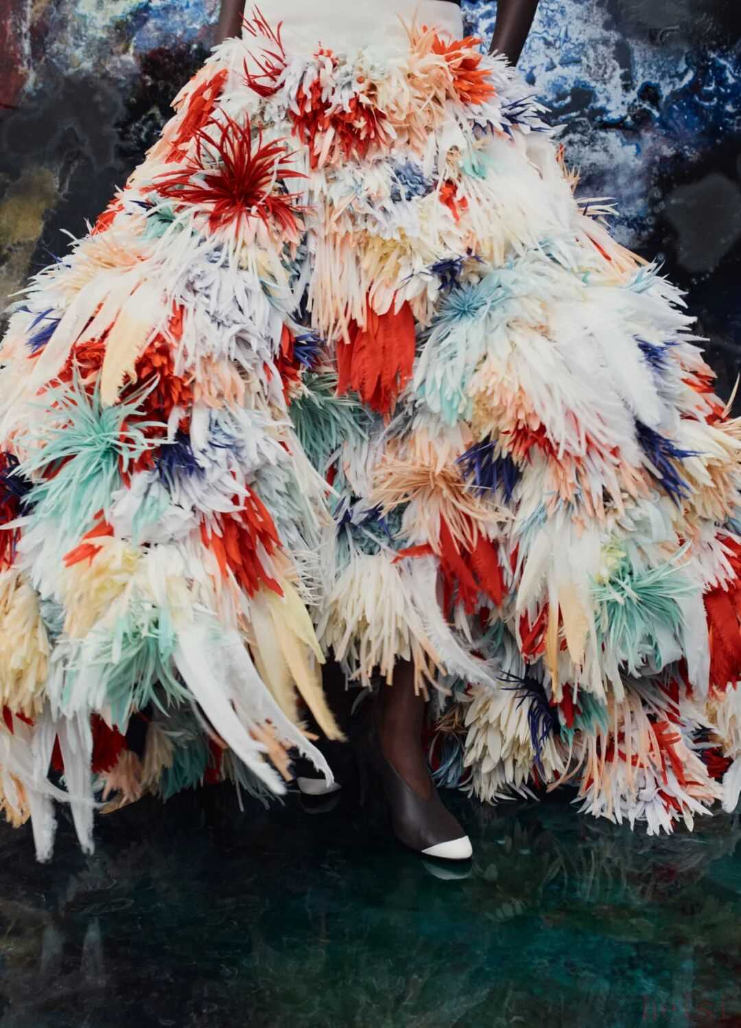 Blazy如此形容壓軸造型,無(wú)論如何解讀,這毋庸置疑是一個(gè)歡愉、解放、自由與樂觀的時(shí)裝時(shí)刻。