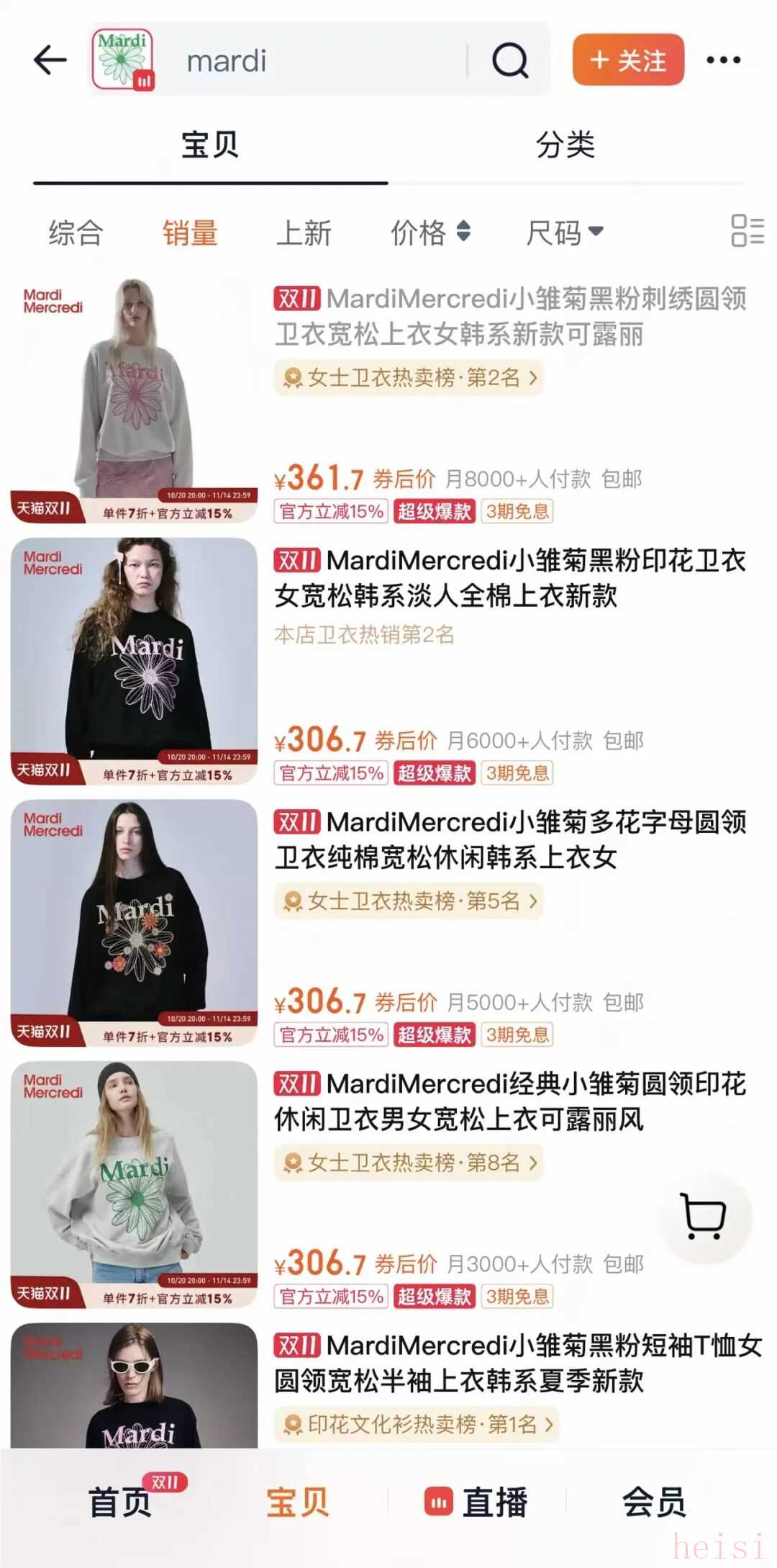 Mardi Mercredi更是憑借代言人金高銀的清爽氣質(zhì)成為松弛感、都市感代名詞。其熱門款衛(wèi)衣和T恤在其天貓旗艦店累計(jì)售出近20萬(wàn)件。