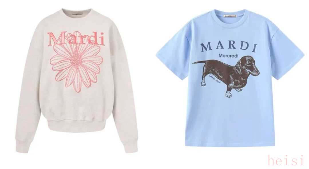 如Mardi Mercredi以T恤和衛(wèi)衣為爆款品類,一朵花、一條狗,大大的圖案印在胸前,松弛感、元?dú)飧欣瓭M,讓人一眼記住。