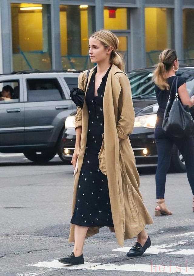 最狠的是BellaHadid,兩件風(fēng)衣疊穿——一件短款oversize,一件長(zhǎng)款收腰,像把季節(jié)縫進(jìn)了同一件衣服里。