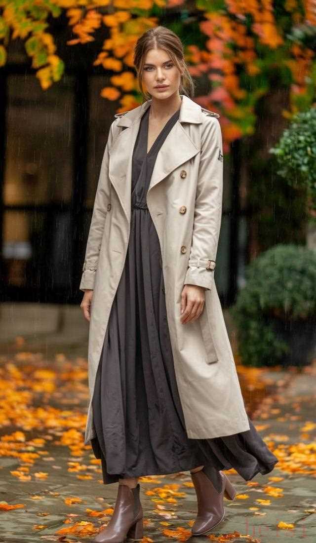 5. "應(yīng)對(duì)秋意":風(fēng)衣的長(zhǎng)度和材質(zhì)通常能提供恰到好處的保暖,同時(shí)又能保持風(fēng)度,