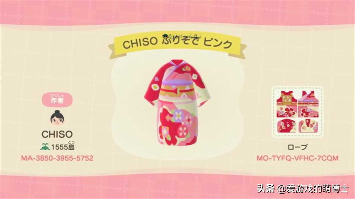最后也是最重要的部分,那就是“千總”已經(jīng)公開了作者ID,那就是“MA-3850-3955-5752”。開通了Nintendo Switch Online 服務的玩家在服飾店中,找到一臺粉紅色的機器,在機器上就輸入該作者 ID,就可以免費下載各式各樣的和服了!