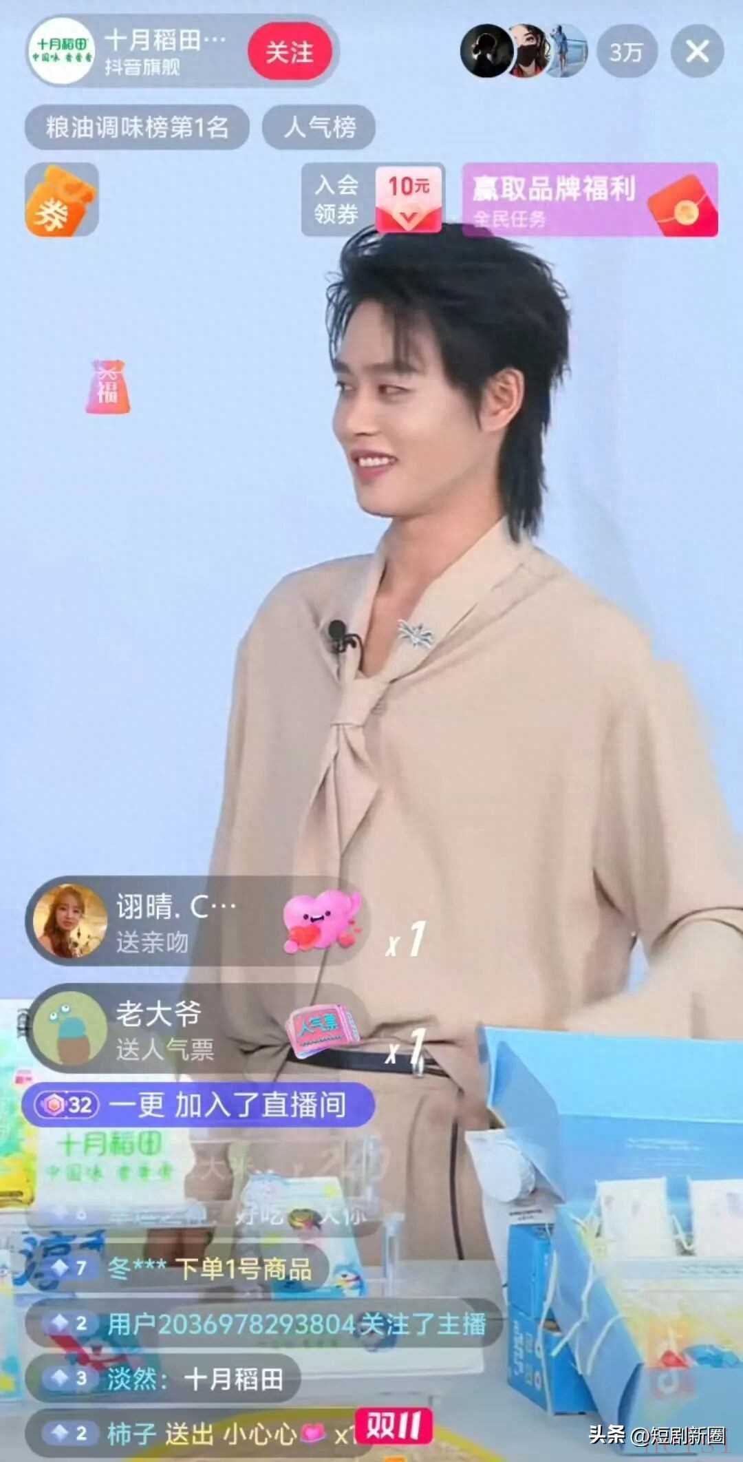 據(jù)說這場直播在線人數(shù)最高10萬人,短劇新圈(ID:newplaylet)看的時候,剛開播15分鐘,顯示在線人數(shù)4萬人。但這次直播最大的敗筆是,直播間網(wǎng)絡(luò)太卡了。很多人都在評論區(qū)說,根本看不下去。這算是一次翻車吧。不過,我們今天講的重點不是直播翻車,而是十月稻田這家上市公司品牌為什么柯淳去直播間?十月稻田不僅柯淳作為新米季的醇香推薦官,還跟柯淳定制了聯(lián)名款的產(chǎn)品。之前的明星藝人更傾向于美妝洗護,以及零食品牌代言,很少有人與米面糧油品牌合作??麓疽菜闶情_了先河了。其實不光是柯淳與品牌方直播合作,不久前,演員何健麒也出現(xiàn)在了babycare的官方直播間。
