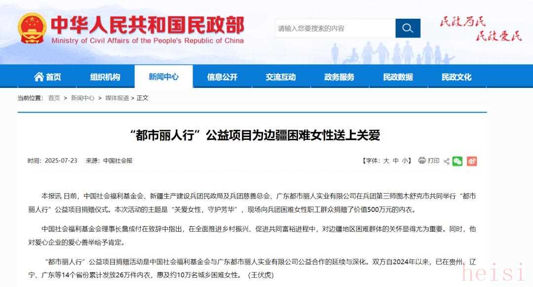 值得欣慰的是,有內(nèi)衣品牌默默將目光投向這些“說不出的窘迫”,并送上一份份溫暖的禮物。近日,民政部官網(wǎng)刊發(fā)了都市麗人聯(lián)合中國社會福利基金會在新疆圖木舒克開展的“麗人公益行”捐贈項目。在此次活動中,都市麗人向當(dāng)?shù)乜犊栀浟藘r值500萬元、總計5萬件的高品質(zhì)內(nèi)衣,旨在改善邊疆女性的基礎(chǔ)生活物資條件。
