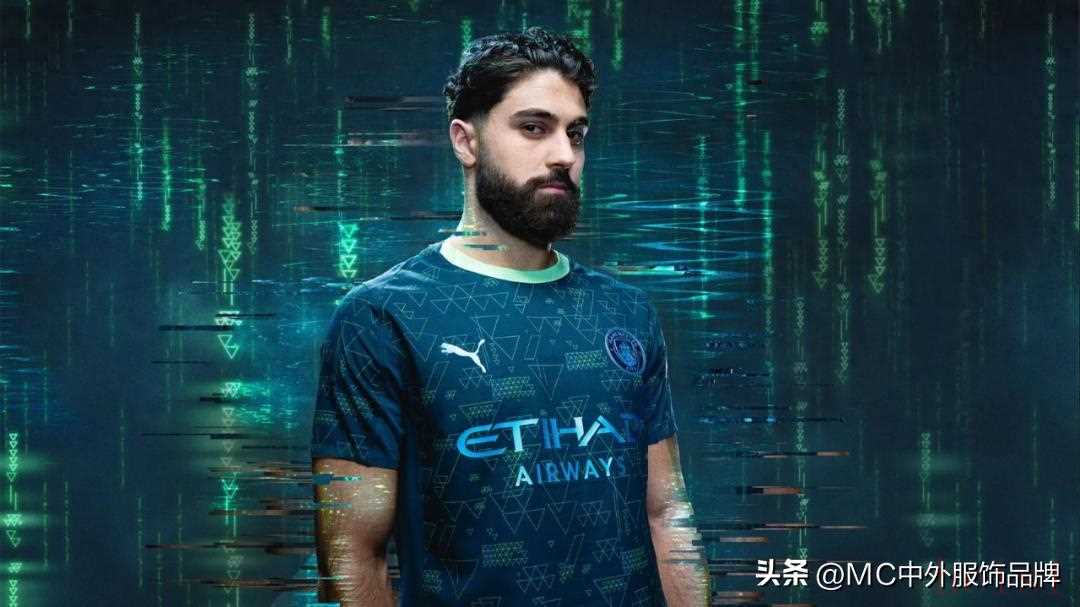 設(shè)計上,球衣以深森林綠色為底,飾有青綠色和金屬色三角形圖案,既呼應(yīng)EA FC標(biāo)志性美學(xué),也暗合曼城優(yōu)雅的球風(fēng)。金屬色彪馬標(biāo)志與隊徽中的NFC芯片相得益彰,凸顯科技感。