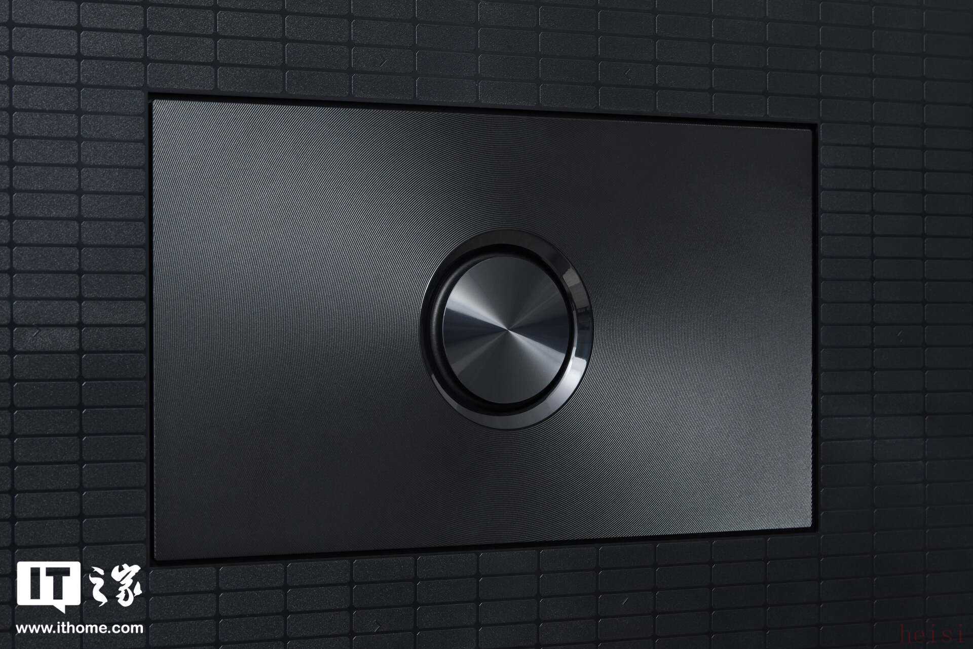 這個(gè)設(shè)計(jì)很巧妙,它確保了聲音是朝向觀眾直出的,而不是像底置音響那樣先經(jīng)過(guò)桌面反射再入耳。開機(jī)時(shí),細(xì)膩的光效亮起,確實(shí)有種“星空”的氛圍感,讓冰冷的科技產(chǎn)品多了一絲溫度。