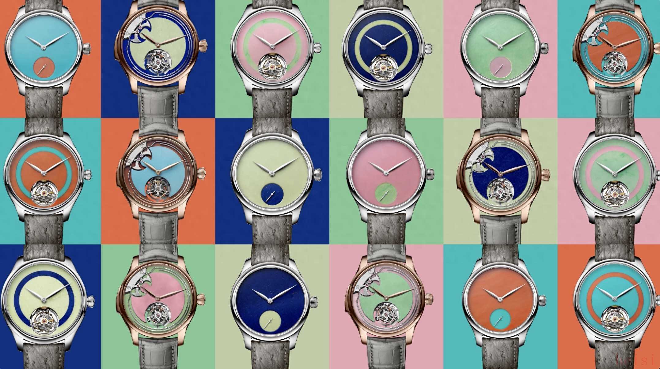 Bertrand介紹道,今年亨利慕時(shí)無論是展廳布置還是產(chǎn)品都希望能夠讓大家“眼前一亮”。今年,亨利慕時(shí)全新發(fā)布的Pop系列再次打破常規(guī),將緬甸玉石、綠松石、珊瑚、粉色歐泊、青金石、檸檬綠玉髓等不同色彩與材質(zhì)在表盤上進(jìn)行組合,表盤不見品牌標(biāo)志與時(shí)標(biāo),淋漓盡致地展現(xiàn)了品牌的“叛逆”。