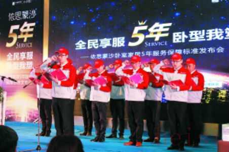 在依思蒙沙臥室家居五年服務(wù)保障標(biāo)準(zhǔn)發(fā)布會上,依思蒙沙員工以宣誓的方式做出服務(wù)承諾