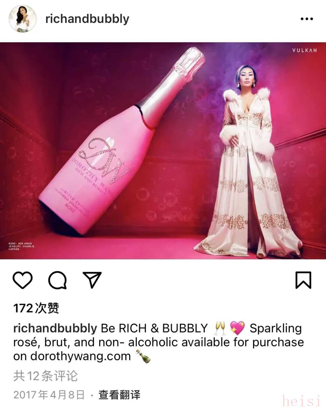 Dorothy接受媒體訪問時都也要擺著自家香檳,ins更是沒少打廣告。