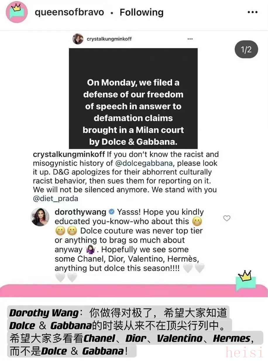 Dorothy Wang當時是少有出面力撐爆料人的歐美圈名流,她還公開表示真·有品味的貴婦根本不買這個牌子,直接正面剛。