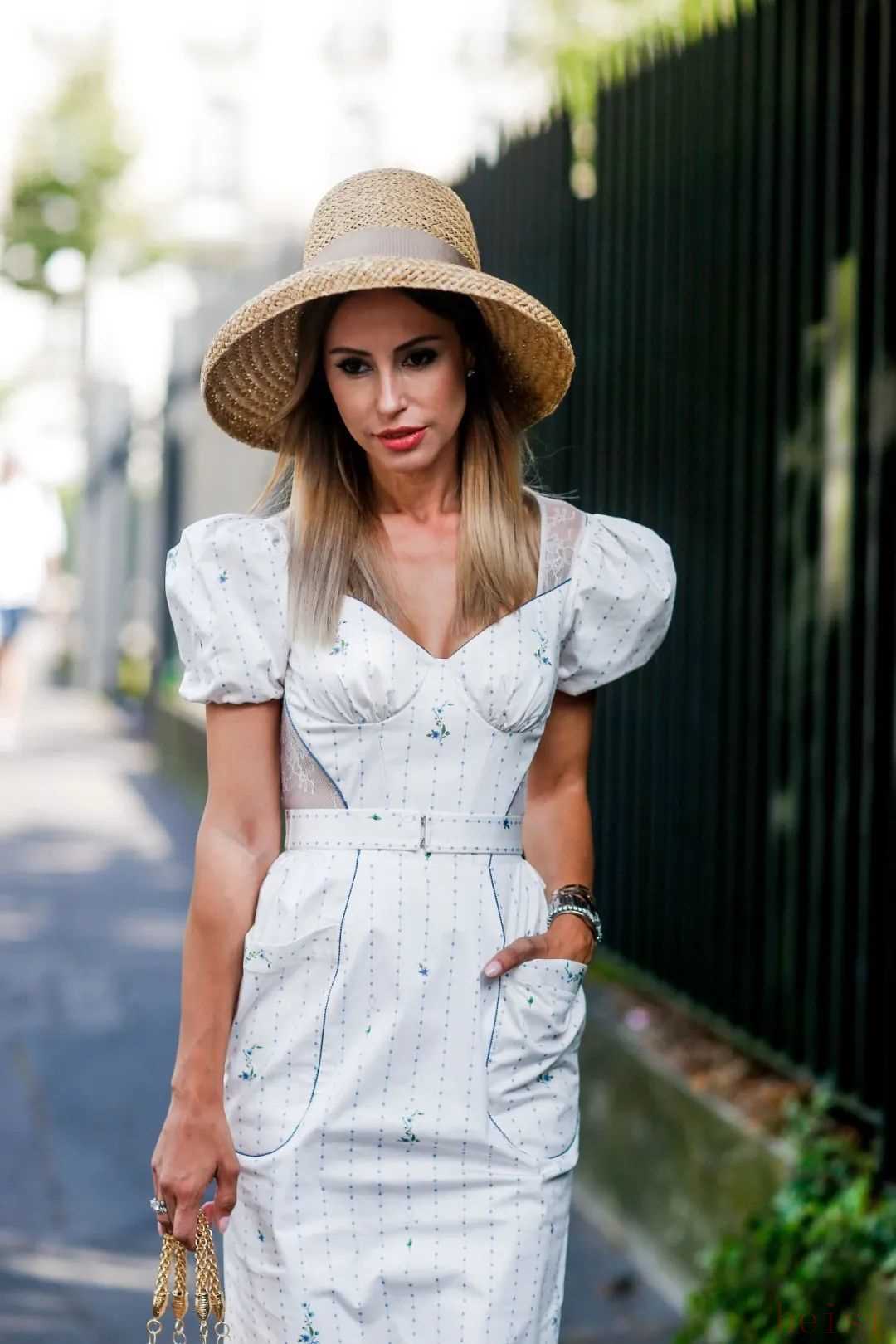 寬檐蛋糕帽與泡泡袖連衣裙一搭,高貴冷艷的感覺出來了!