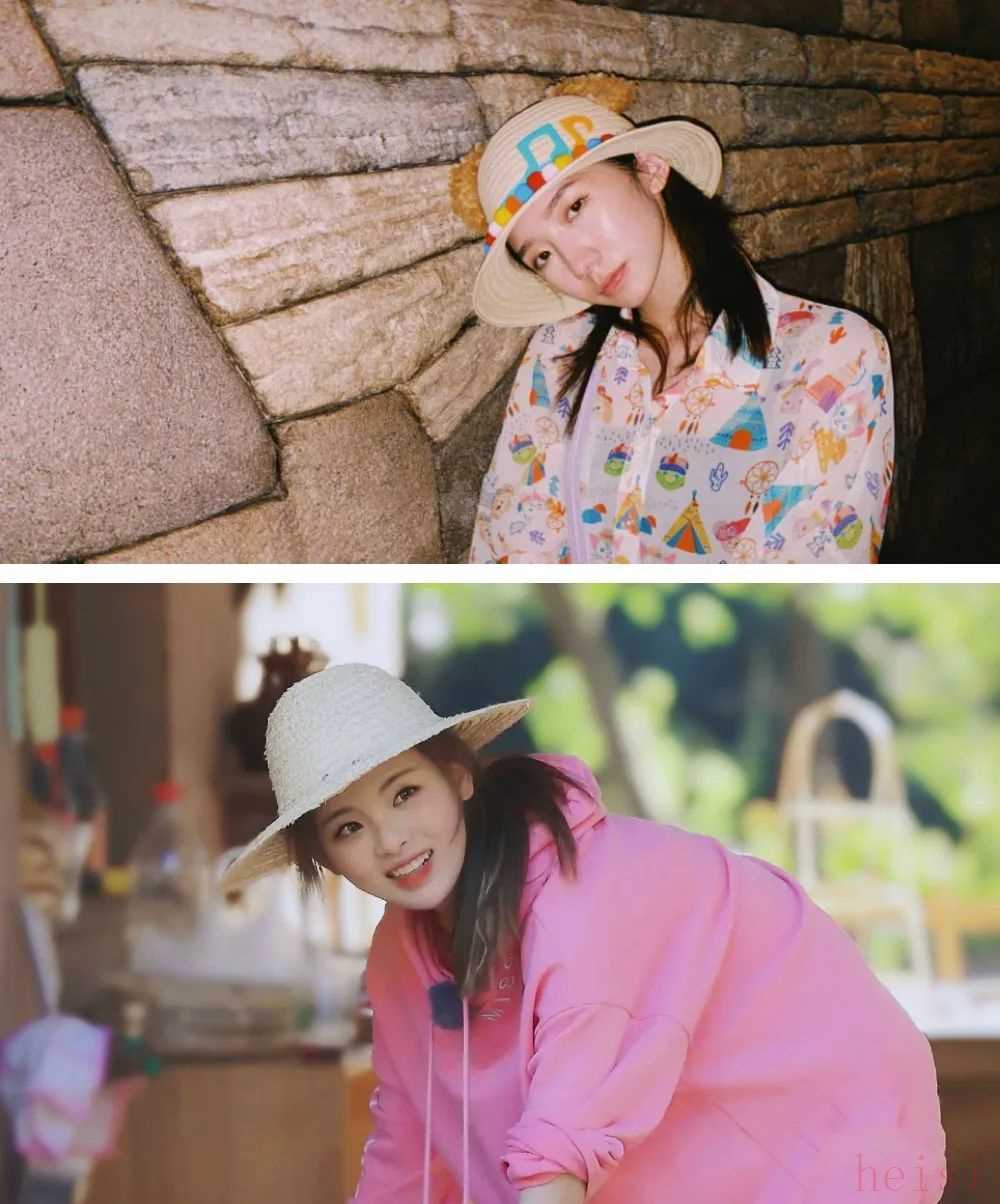 彩色毛球點綴的穹頂寬檐帽把孟美岐的俏皮流露無疑,回歸質樸的穹頂寬檐帽則把楊超越的小清新展示出來!
