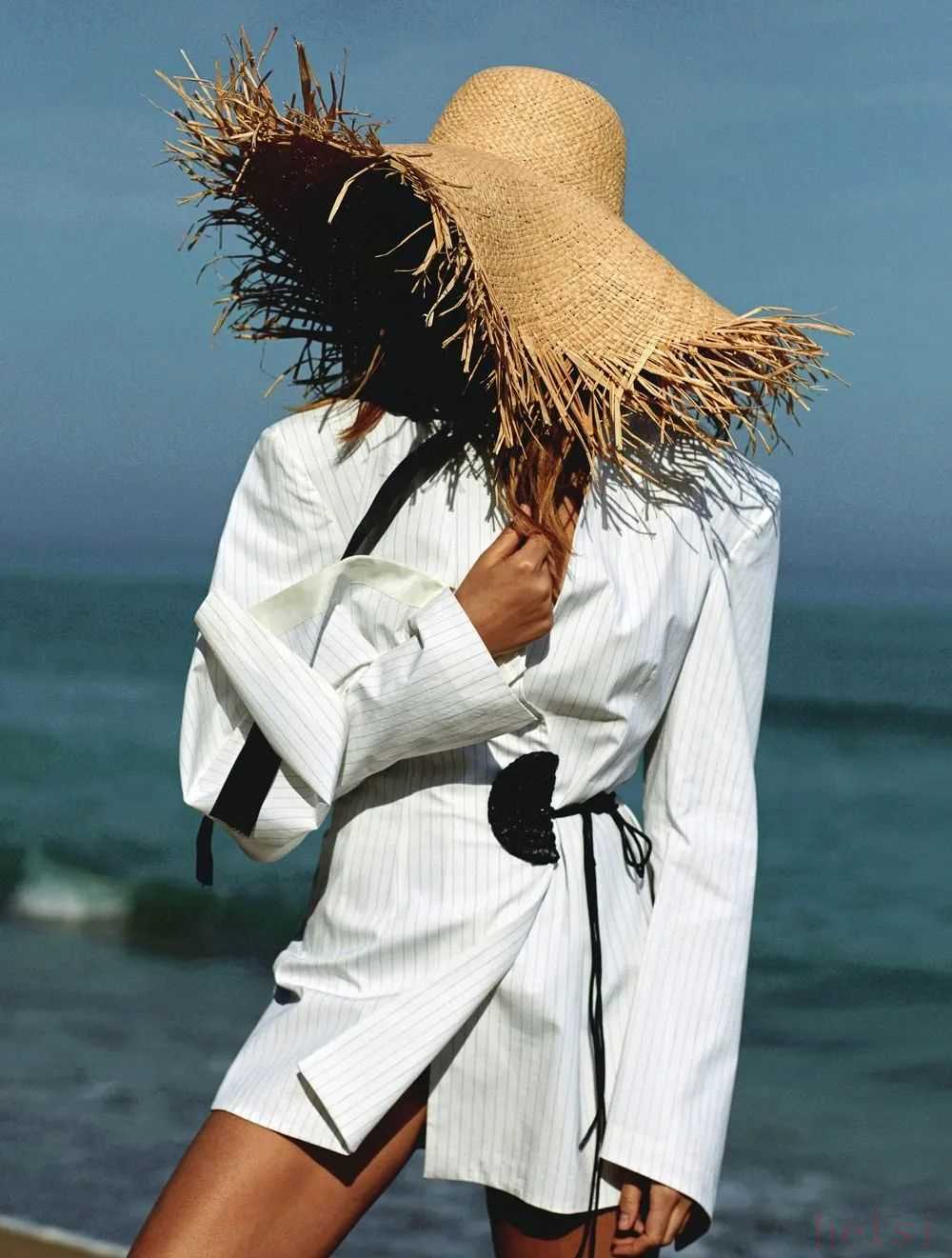 其中,俄羅斯名媛LenaPerminova也曾頭戴Ruslan Baginksiy牛仔帽形草帽,下搭米色狩獵風綁帶連衣裙,氣質熱烈又優(yōu)雅!而廓形寬大并可隨心造型的Maxi寬檐帽也被新加坡時尚博主Yoyo Cao上身,與Fendi草編Peekaboo包相得益彰!
